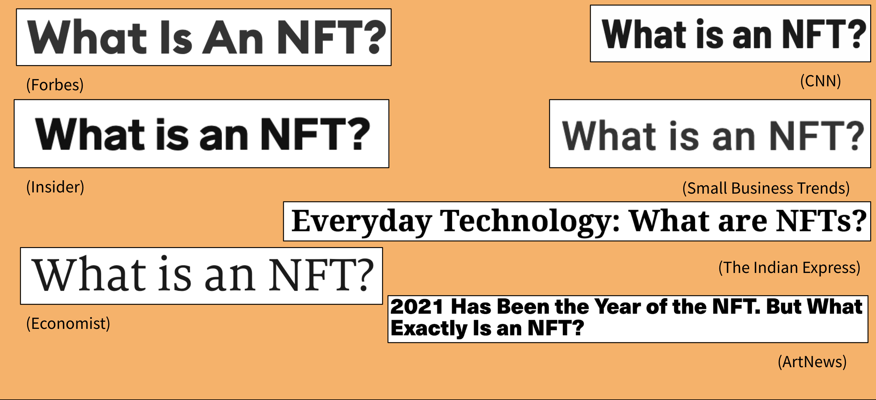 Only a few years into their existence, NFTs have generated an enormous buzz. Headlines speak of children made millionaires, artists freed from middlemen and toil, companies outbidding each other in a black box, and journalists crossing ethical lines for credible insider information. If NFT press coverage seems to have a bizarre emotional ebb and flow, chalk it up to its direct correlation with the previous week’s bitcoin returns.